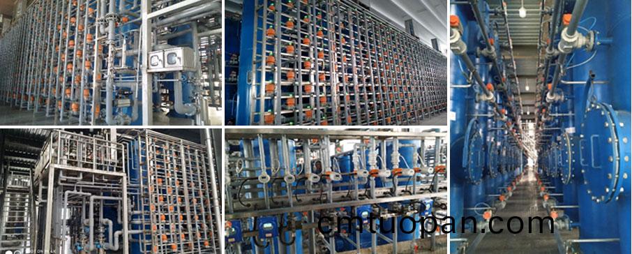 Because the multi-unit continuous ion exchange system uses more than 500 valves and technological operation restricts one cycle with about 20 hours, they switch on or off less than 5,000 times for 10 years. This system adopts the imported pneumatic diaphragm valve from Switzerland. The service life of the valve is 250,000 times or 25 years, so the reliability of the system is greatly improved. Moreover, there are a few types of valves. there are generally two kinds of valves in the system and we only need to prepare two backup valves. the valve is connected by flare connection, which is very convenient to replace each other.